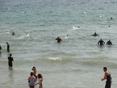 Nadando para alto-mar, em direcção à 1ª bóia. Aqui ainda tinha muita gente à minha volta.