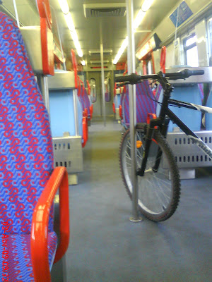 No comboio segui com poucos passageiros e a bica ficou a obstruir quase metade de uma entrada, mas foram os polícias que me recomendaram aquela posição. ;)