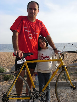 Só na manhã do dia da prova a vi. Saiu do fundo da garagem e apareceu. Amarela pincelada por cima de azul petróleo, comprada em 1976 por 80€ - um balúrdio para a época - de dez, sim DEZ velocidades!!
